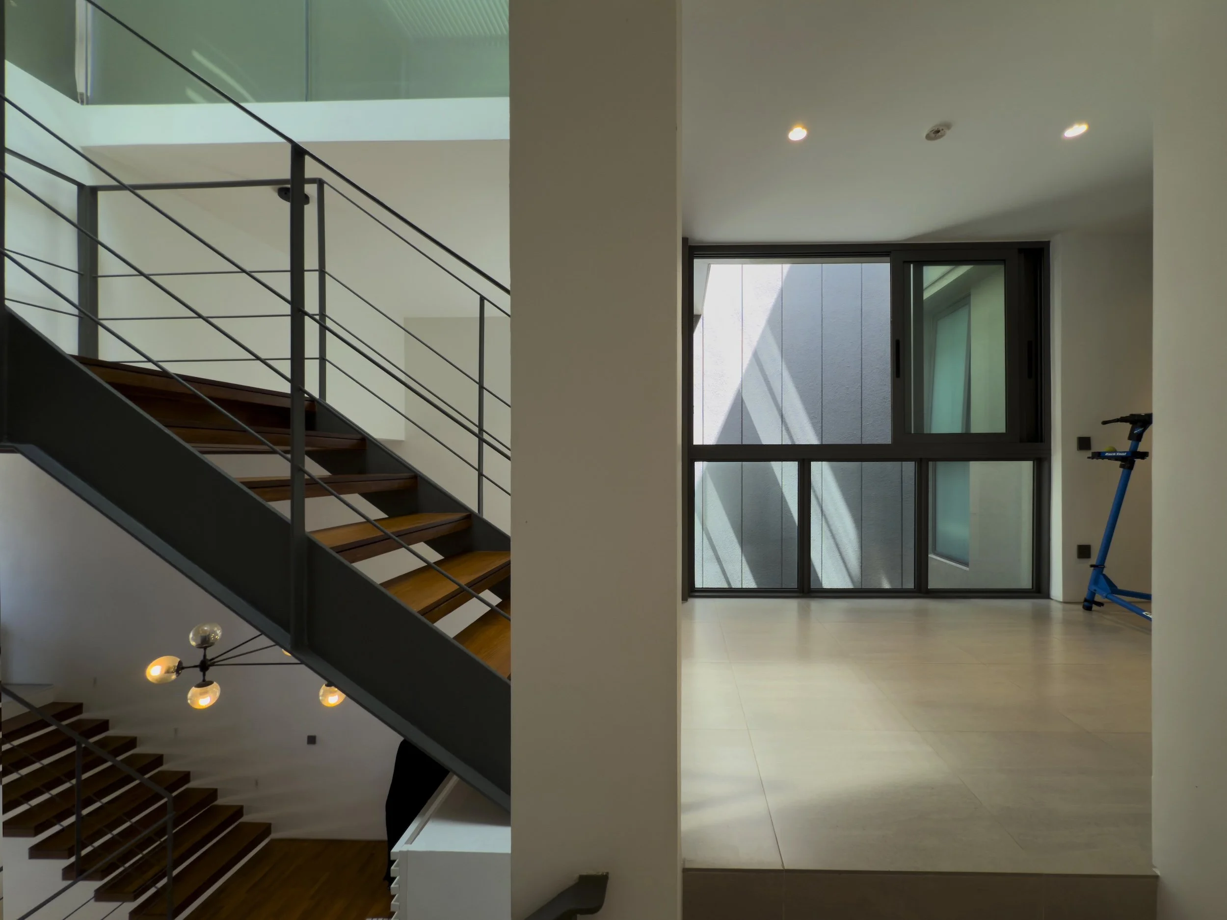 Internal walls are painted, devoid of claddings. Careful tectonic resolution is the only means through which the planes and volumes speak clearly.